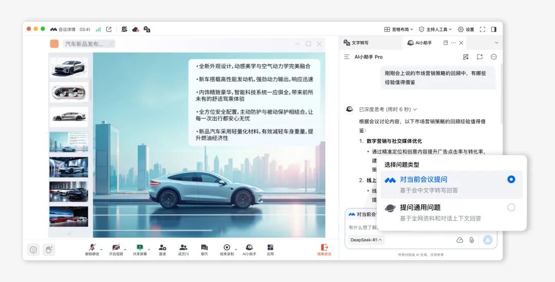 • 让DeepSeek+Hunyuan双模型加持的「AI小助手Pro」随时帮你查资料、补大纲、补创意,把会前会中会后都变成高效生产力时段。