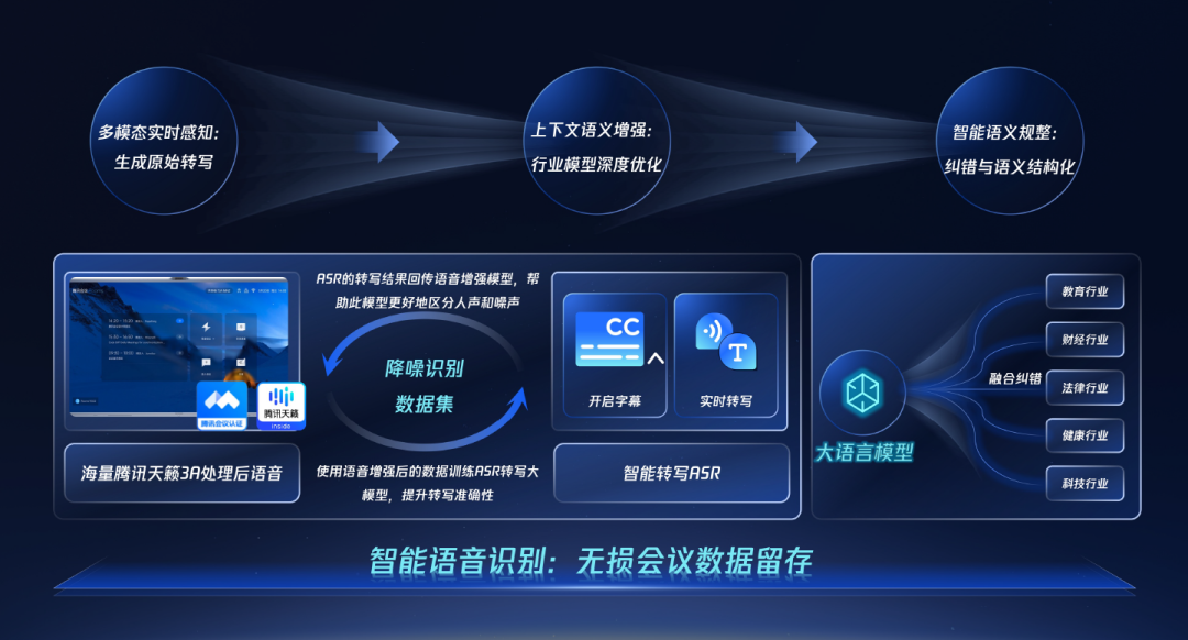 腾讯会议的语音转写不仅结合了会议中OCR(文字识别)内容,更结合大语言模型,针对不同行业的应用场景进行了优化。