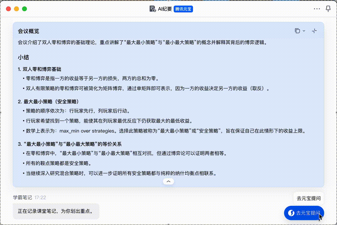 “元宝,帮我梳理这节课重点。”